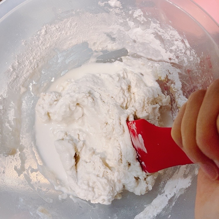 - 2に残りの水も加え、耳たぶくらいの固さになるまで混ぜる。