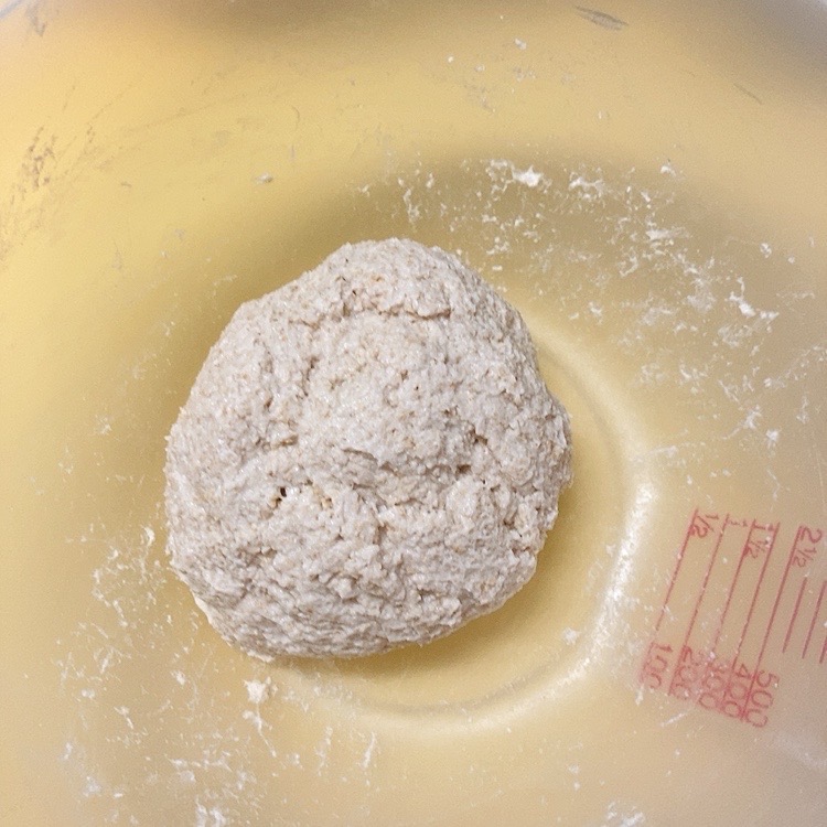 2. だんだん、もったりとしてきてまとまってきたら、ボウルの中でひとまとめにする。
