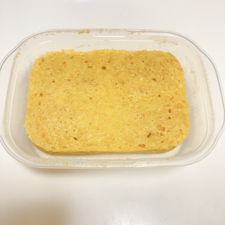 混ぜた生地の上に野菜をのせて、再度電子レンジで加熱して出来上がり。